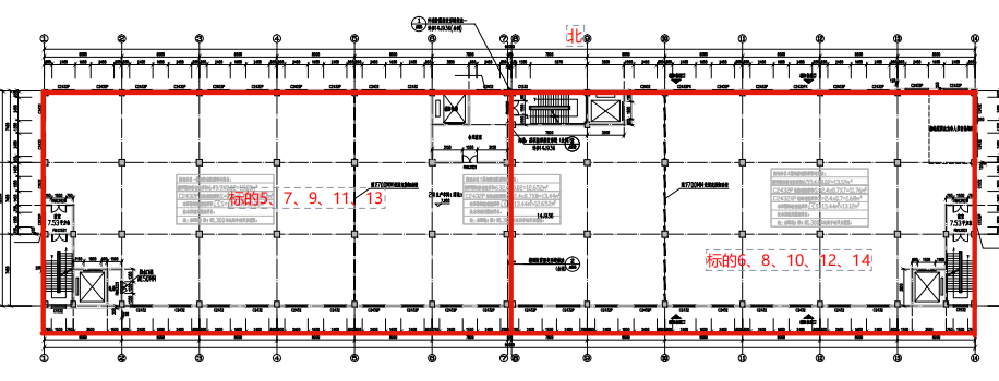 二號廠房三層至七層結(jié)構(gòu)與二層相同不予贅述,標(biāo)的對應(yīng)樓層如下圖: